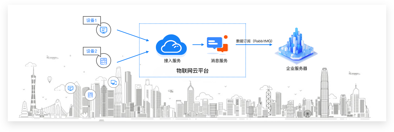 | 数据订阅流转 | 设备接入pg电子网站物联网平台后,企业服务端可以通过配置服务端订阅,直接订阅产品下多种类型的消息,物联网平台会将产品下所有设备中已订阅类型的消息,转发至您的服务器。 |